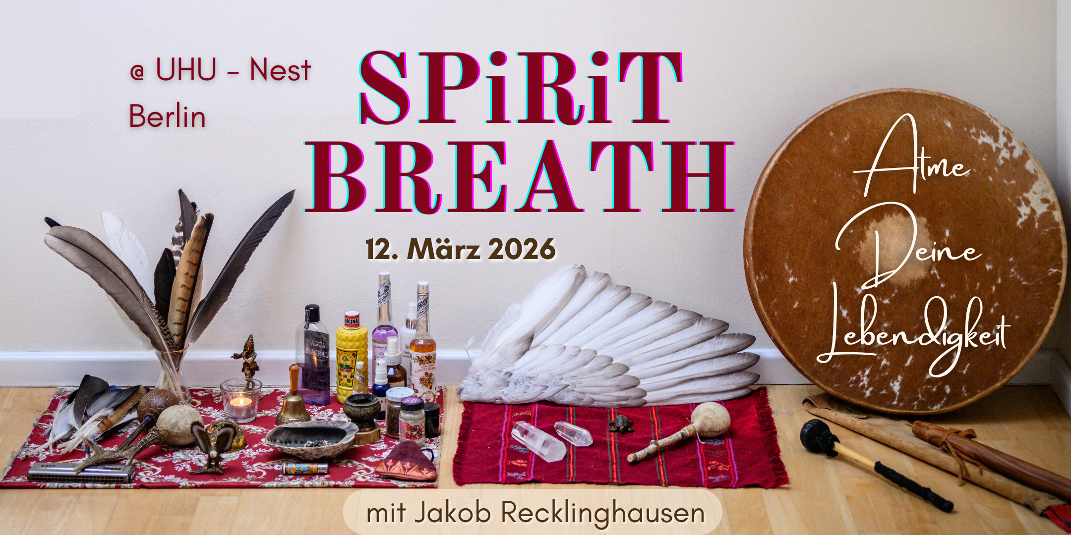 UHU (Nest) Moosdorfstr. 7-9, Berlin, Berlin, Germanymit Jakob Recklinghausen Beim schamanischen Breathwork nutzen wir die Kraft der Spirits, um uns in die volle Lebendigkeit zu atmen. Der Atem ist die Schwelle zwischen willkürlicher Handlung und vegetativer Funktion. In unserem persönlichen Atemmuster ist unsere Lebensgeschichte gespeichert. Durch den verbundenen Atem können wir Erinnerungen und gefrorene Gefühle aus dem Unbewussten ins Bewusstsein holen, […]
